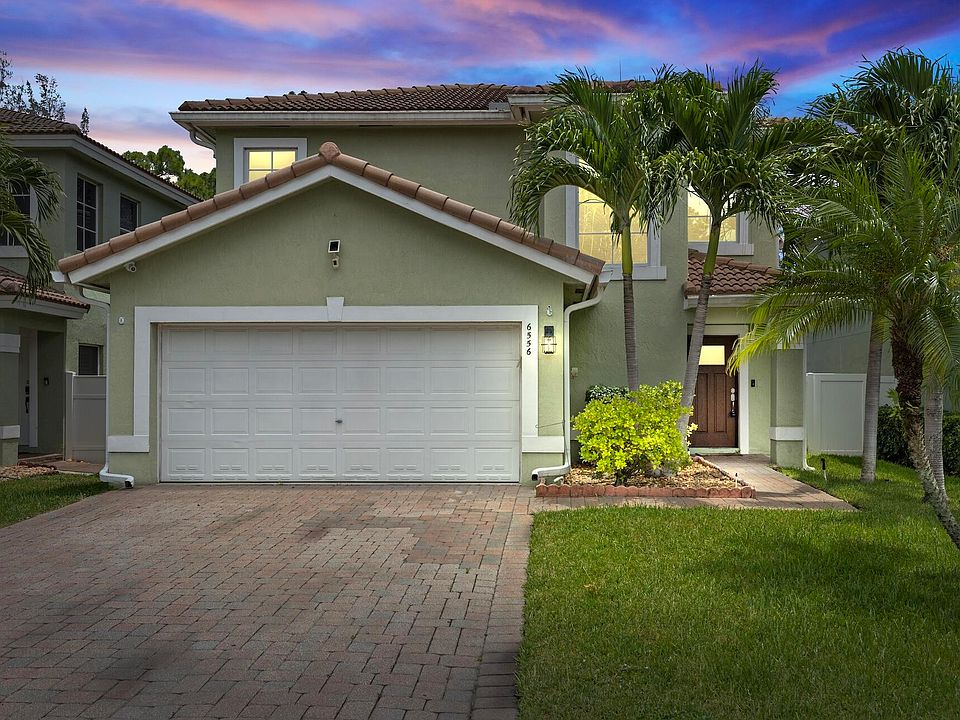 Step into style and comfort with this 3-bedroom, 2.5-bath, 2-story single-family home in a desirable unmanned gated community! Featuring a newly remodeled kitchen and bathrooms, crown molding throughout the living areas, and hurricane impact windows & doors (2020) for peace of mind. The bonus entertainment room covered back patio, and fully fenced yard are perfect for relaxing or hosting guests. Upstairs, you'll find all bedrooms plus a convenient laundry area and a Jack & Jill bath. The 2-car garage, home monitoring hookup, and regularly serviced A/C add to the comfort. Enjoy community perks including a sparkling pool and tennis court--with HOA maintaining all common areas. Recent updates include a hot water heater (2023), giving you one less thing to worry about. Just bring your vision for a fresh coat of interior paint and make this beauty your own! (Pool table does not convey)