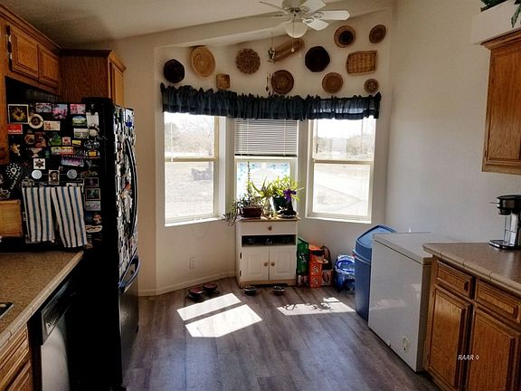 This lovely 2005, 3 bedroom 2 bathroom Home offers open living room, dining area with sliding glass door that opens out to the covered patio area, large kitchen with stainless steel appliances, skylight, wood laminate flooring, and inside laundry room. Living room and bedrooms have carpet and ceiling fans. Master bedroom offers walk in closet and a large master bathroom with lots of counter space. Special features include a water softener, 2 Garages with automatic door openers, 2.51 acres of space for pets, RV/boat parking, has an amazing mountain view and is just approximately 12 miles to Naval Air Weapons Station in Ridgecrest. This is a must see!