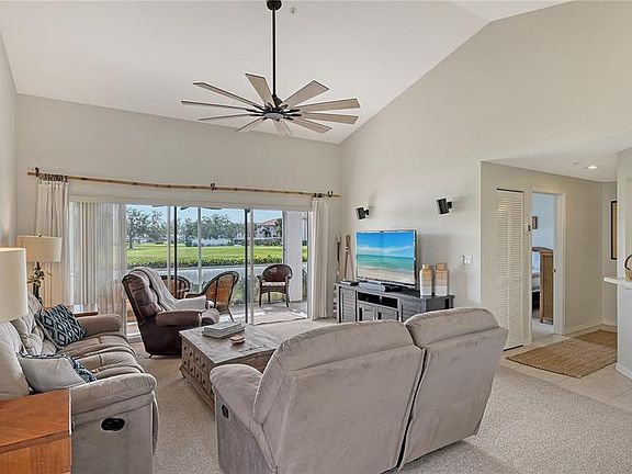 Ready to book season 2026! Condo overlooking Water and the Golf Course! Relax on the spacious lanai. First Floor End Unit that has been beautifully maintained. Vaulted ceiling in the Living Room which adjoins to the Dining Area for an open concept. Kitchen overlooks the Living Room to be able to enjoy Company while you prepare the food solid surface countertops, ceramic tile, and eating space in there as well! The attached Garage is located off the Kitchen for convenience and has plenty of storage availability. The Walk-in Closet has plenty of space. There are dual sinks and a walk-in shower in the primary bedroom. Have guests in the second Bedroom, along with the second bathroom. All of this is located in the wonderful Tara Golf & CC Community. You will love having the Class "A" Membership with one time transfer fee of $400, as you will have access to all of the Amenities of the Community! Community offers amenities galore including an exercise facility with state-of-the-art equipment, lap pool, hot tub, concession stand, tennis courts, Championship 18-hole golf course, Clubhouse with fine dining and grill room, pro-shop, driving range, putting green, pickle ball, bocce ball, firepit, and a very active social membership. Smaller heated community pool located a short walk from this unit as well. Utilities cap paid up to $150 monthly. Centrally located with easy access to I-75, shopping, dining, with a short drive to Sarasota/Bradenton International Airport, UTC Mall, Ringling Museum, downtown Sarasota, and some of the most beautiful beaches Southwestern Florida has! It is a Complete Package! Conveniently located to I-75 for Shopping and Restaurants in the UTC area.