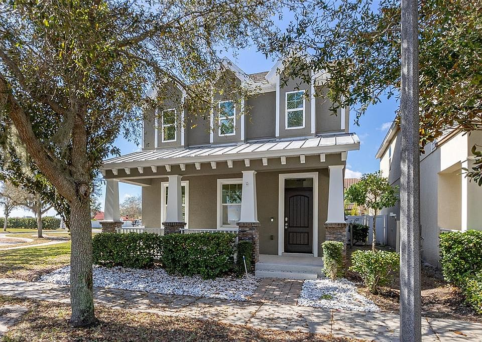 "Price Adjustment" Welcome to 6556 Golden Dewdrop Trail! This beautiful Craftsman style remodeled SFH on a corner lot with a large Handsome front porch. Located in one of the best areas of Windermere convenient to great schools, shops and restaurants, Publix, pharmacy, and more. Newly painted inside and out. NO CARPET. The main level features living room, family room, Dining area, Spacious kitchen with 42" Cabinets, Quartz counters, Kitchen Island and Powder room. Just off the family room is a screened Lanai and a brick paver out door entertainment space, detached 2 car garage and privacy fence. On the second level has the Primary Bedroom suit and 2 secondary bedrooms, bathroom and large laundry room. Also on the second level is a lovely loft perfect for family fun nights or may be converted into a 4th bedroom. All new Stainless Steel Frigidaire appliances, New lighting, New windows in family room and new French doors. Updated bathrooms with Quartz Counters. Across from the home is the community pool, playground, dog park and a huge multi-use green space area. You must see it now as it won't last long!