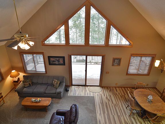 1990 cedar sided Minerva Lake (Chain of 7 lakes) A-Frame with 2142 SQ FT, 3 BR 2 BA, with vaulted ceilings and a walkout. $40,000 in updates w/ brand new kitchen in 2017, new stainless steel appliances, lighting, new entry doors including Andersen patio door, countertops, sink and faucet, new flooring, updated baths, new roofs and more. Additional area in basement to add a 4th BR or 3rd bath. Peaceful 1.75 acre setting with 100 ft of prime sandy shoreline. Oversized 2 car garage with finished area for guests, workshop, etc. Minerva Lake Chain consists of 7 clean lakes and provides miles of tranquil boating or canoe trips. Enjoy this north woods setting that is only 90 minutes from the Twin Cities. Easy yard to maintain that is mostly wooded. Please call or text Scott at 651-236-0789 with questions or to schedule a showing. Thank you for looking.
