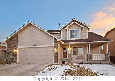 This fantastic home backs to OPEN SPACE with walking trails and has PIKES PEAK and MOUNTAIN VIEWS. It has a beautiful exterior with generous amounts of STONE and a covered front porch with STONE PILLARS. Great curb appeal! WALKOUT LOT WITH A PRIVACY FENCED BACK YARD which is flat, great for kids and dogs. PLAYSET IS INCLUDED Private. Walking distance to shopping. CONVENIENT LOCATION