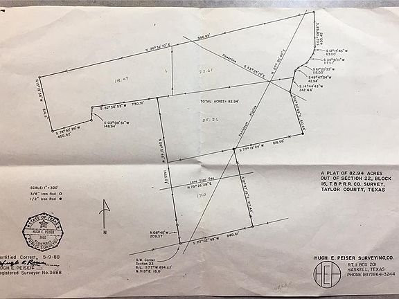 Gorgeous 82.92 Acre Farm. Located just outside of the city limits. 65 acres are in cultivation 18 in pasture. Fenced and cross fenced. 2 earth stock tanks plus a small dove draw pond. Good hunting on turkey, deer, dove and hogs. 20 x 40 barn with electric. Coral. 24 x 40 tractor shed with water and electric. 600 bushel grain bin. 21 x 24 carport. Storage building. Hawley water, Taylor electric. No mobile homes. Paved road. Several beautiful building sites!