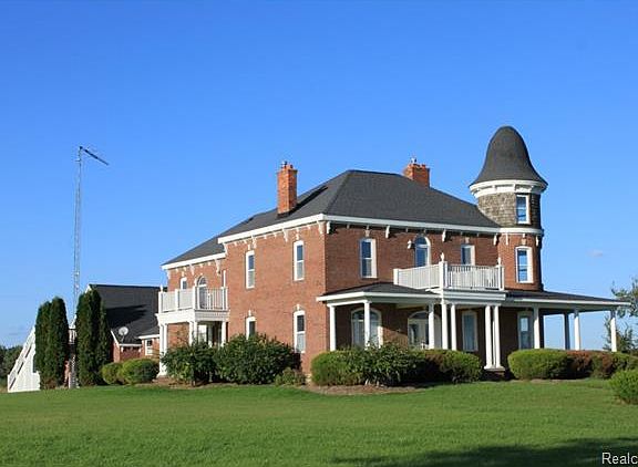 Architecturally Splendid! Enjoy your Up North retreat without leaving this gorgeous Victorian Styled Brick home on 6 acres with a private pond. All new in 2003 from foundation up. Enjoy the charm and character of this classic design but with today's desired amenities. This amazing home is more than 4,000sq.ft in size with 4 bedrooms, 4.5 baths, Parlor, Library and extensive hardwood floors. The generously sized kitchen has custom hickory cabinets, expansive counters, upgraded appliances and loads of windows offering natural sunlight. Designed with graceful living in mind. The quality of workmanship and attention to detail can be seen in every aspect of the build. Solid wood doors, stunning custom bannister, crown moldings, arched doorways, 2 gas log fireplaces, large wrap around covered porch. Great views of the country side from North and West facing balconies. Three car attached garage with private In-Law suite above. Located in the country, yet easy access to M53/ Van Dyke Rd.
