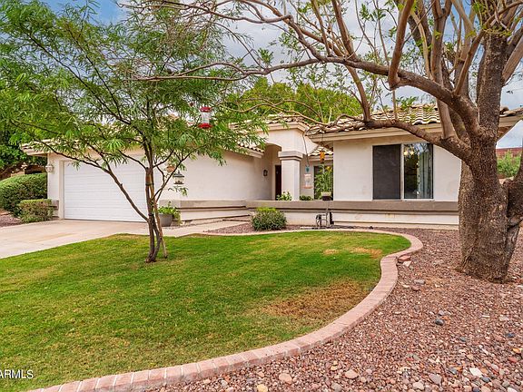 Discover this thoughtfully laid out 5-bed, 3-full bath home located in the sought-after Red Mountain school district. This home seamlessly combines elegance w/ functionality. Revel in a host of upgrades from a 200 amp electrical box, garage boasting an epoxy floor, modern door & an advanced opener with battery backup. The interiors feature an extensive laminate flooring in the bedrooms & entry with ceramic tile gracing the other spaces. The expansive tiled kitchen comes equipped with updated appliances set against oak cabinets & countertops adorned with ceramic tiles. Retreat to the master suite, showcasing double vanities, a sliding door leading to the backyard, and a lavish bath with double sinks. This home is digitally connected with telephone jacks, cable, & category 5 networking in every bedroom, while modernized fixtures, faucets, & electrical outlets/switches enhance every room. Storage won't be an issue with the built-in shelving in some bedrooms & the garage's 12-foot counter and oak cabinets. The exterior is a paradise in itself; a beautifully manicured, large backyard awaits, complemented by an extended covered patio with a new epoxy finish, & guarded by a majestic shade tree. With no HOA, ceiling fans in key spaces, and a tapestry of thoughtful upgrades, this home is the epitome of comfort and convenience. Truly, a fabulous find that beckons you to see it in person! This area is hopping with tons of new fun stuff nearby like: Restaurants: