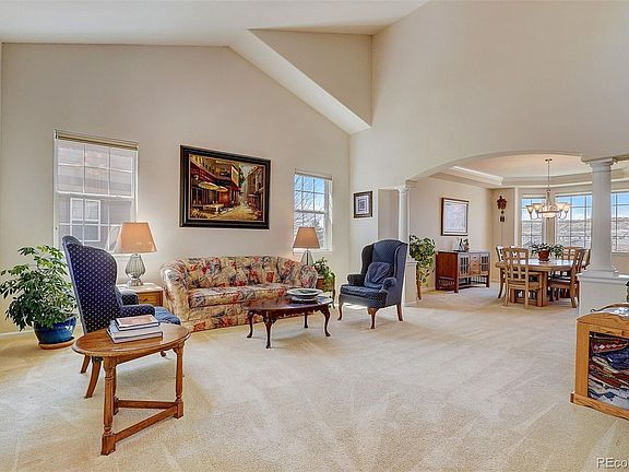 Situated on an ideal lot, this lovely home backs to open space with colorful sunsets and front porch views of the greenbelt with trail access across the street! Upon entering you will find generous room sizes and flexible spaces to meet your exact needs, as this home offers over 5000 finished square feet. Sunlight streams through large windows, illuminating the vaulted living spaces. The gourmet kitchen beckons with stainless steel appliances, granite countertops and a spacious island, perfect for culinary creations and entertaining alike. The covered elevated deck provides an idyllic setting for al fresco dining or simply unwinding amidst the tranquility of nature. Main level office has french doors, a built in bookcase and is adjacent to the bathroom with shower. Laundry room provides a basin sink, closet storage and access to the finished 3 car side-by-side garage. Ascend the dramatic curved staircase to be delighted by 4 bedrooms and 3 bathrooms upstairs. Retreat to the luxurious master suite, where relaxation awaits amidst open spaces views and a spa-like bathroom, complete with a soaking tub and dual vanities. Additional bedrooms offer ample space and privacy for family and guests, including the ensuite with private bath. The spacious finished walk-out basement was designed with relaxing and entertaining in mind, boasting a wet bar, rec and media areas, second office and guest room with additional bathroom nearby. The custom wine cellar is located neatly at the bottom of the stairs, convenient for imbibing on any level. Other features include dual zone HVAC with newer furnaces and A/C, freshly painted exterior in 2023 and a concrete tile roof. Nestled within the picturesque community of Cobblestone Ranch, where you can enjoy tennis, the community pool, trails and playground. Located in the Douglas County School District, less than 15 minutes from downtown Parker, the Outlets at Castle Rock, shopping, dining, and conveniences.
