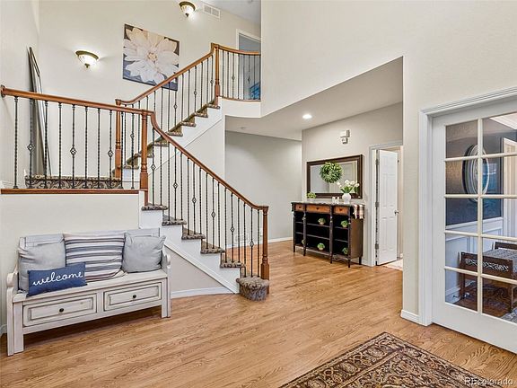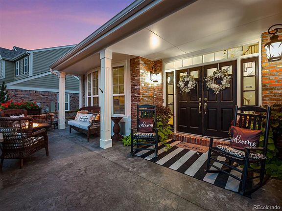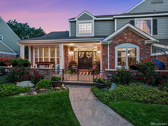 Enter this gorgeous home with a two story foyer with an open staircase. Custom woodwork, new paint inside and out enhance the look of this pristine Sanford built home. The large living room and dining room is to the left and is perfect for your family get togethers. The private study is located to the right with a 3/4 bath. Built in book cases and a window seat compliment the study. The gourmet kitchen with maple cabinets, granite counters and a large eating area opens up to a family room with a soaring 10 foot, wood coffered ceiling and an expansive brick gas fireplace. Walk out the wall of glass, with three new sliding doors, to a large yard with a park like setting and several seating areas in the professionally landscaped yard. The laundry room with a farm sink and cabinets has a door with easy access to the yard. Walk up the open staircase to the large primary suite, with a sitting area, 2 large walk in closets and a private 5 piece bath with a large soaking tub. The second floor consists of 2 extra bedrooms with a Jack N Jill bath and a 3rd ensuite bedroom with a 3/4 bath. The basement is unfinished with many options. You will love the custom front porch with an expanded entertainment area for family gatherings and relaxation. Enjoy your oasis in the back with a gas firepit and your own private hot tub. Don't forget the kids with their own special playhouse and sail boat sand box. Numerous flowers, gardens and trees make this yard a gardener's delight. This home features an oversized 3 car garage with commercial grade cabinets, overhead storage and garage floor coating with a lifetime warranty. Take a short walk to the Homestead Pool and Park for summer fun. Fox Hollow Elementary is a short walk and is located in the desirable Cherry Creek School District. Easy access to E470, DTC, DIA, Southlands Mall, shopping, Regis Jesuit H.S. and Our Lady of Loretto elementary school. Enjoy easy access to the Piney Creek trail for walking and biking.