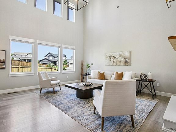 Welcome to your dream home in Castle Pines! Step inside this beautifully designed 3-bedroom, 3-bathroom two-story home, perfectly situated on a spaciously large end lot. Thoughtfully curated with custom designer touches throughout, this home features high vaulted ceilings, striking barn doors, and upgraded lighting, hardware, and fixtures that elevate every space. At the heart of the home, the gourmet kitchen is a showstopper boasting an oversized island, sleek stainless steel appliances, and abundant storage that's ideal for both everyday living and entertaining. A dedicated main-floor office provides the perfect work-from-home setup, while the expansive upstairs loft offers flexible living for play, work, or relaxation. Extend your living space outdoors with a covered patio, oversized landscaped yard and custom outdoor fireplace to enjoy cozy Colorado evenings. All of this in a highly sought-after community with access to top-rated schools, parks, trails, and easy commuter routes. Experience elevated living in Castle Pines—don't miss out and schedule your tour today!
