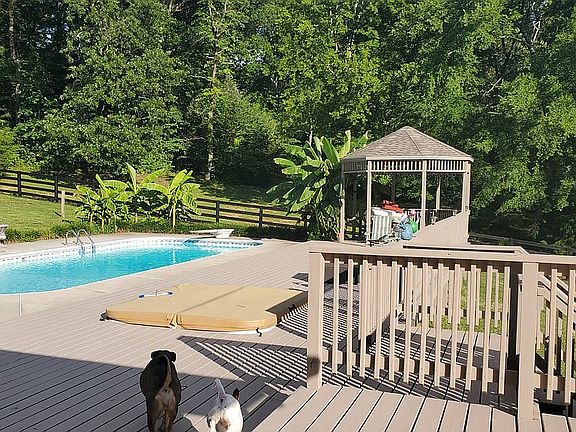 BRING THE HORSES! THIS BEAUTIFUL PRIVATE FARM (3 SEPARATE FENCED IN PASTURE AREAS) ON 11.3 ACRES (COMPLETE WITH OAKS, BLACK WALNUT, MAPLE AND PINE TREES) WITH A BARN AND INGROUND SWIMMING POOL FEATURE AMENITIES AND UPDATES TO INCLUDE: ALL NEW INTERIOR SOLID 6 PANEL DOORS, NEWER ROOF, GREAT ROOM (W/HARDWOOD FLOORS, WOOD-BURNING BRICK FIREPLACE & 17' CATHEDRAL CEILINGS), EAT IN KITCHEN (W/TILE FLOOR, CORIAN COUNTERTOPS, & CROWN MOLDING), SEP. DINING ROOM (W/HARDWOOD FLOORS & CROWN), HALF BATH (W/PEDESTAL SINK), MASTER BR ON MAIN (W/HARDWOOD FLOORS, CROWN MOLDING & WALK-IN CLOSET), TOTALLY REMODELED MASTER BATH (W/NEW TILE FLOOR, NEW CLAW TUB, NEW TILE SHOWER & NEW VANITY W/GRANITE), GUEST BEDROOM (W/GREAT ATTIC STORAGE) AND OVERLOOKS THE POOL, 2ND GUEST BR (ALSO OVERLOOKS THE POOL), GUEST BATH, BONUS ROOM (COULD BE 4TH BR), BEAUTIFUL NEWLY FINISHED BASEMENT (W/ENGLANDER WOOD-BURNING STOVE, CERAMIC TILE FLOOR, 2ND KITCHEN WITH ALL APPLIANCES, LARGE ANDERSON CUSTOM SLIDING DOOR WITH TWO 54" PANELS, FUNCTIONS AS A SEPARATE LIVING AREA FOR FAMILY OR GUESTS), SEPARATE LAUNDRY AREA, 18 X 36 INGROUND SWIMMING POOL (W/NEWER LINER), NEW HUGE 1600+ SQ FT DECK WITH GAZEBO (COMPLETE WITH ELECTRICITY AND LIGHTED CEILING FAN TO KEEP COOL ON HOT DAYS, HOT TUB SUNKEN IN DECK), COVERED FRONT PORCH, 3 STALL BARN (W/ 10 X 10 STALLS, TWO 10'X 20' RUN-INS, TACK ROOM, ADDITIONAL STORAGE ROOM, TRAILER STORAGE, HAY STORAGE IN LOFT, ELECTRICITY & WATER) & KENTUCKY FOUR BOARD FENCING! THIS PRIVATE & SECLUDED PROPERTY BORDERS KYKER BOTTOMS REFUGE (350 ACRES!)-WHAT A RARE FIND!!