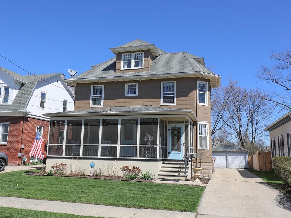 If you are looking for a charming turn of the century home look no further! Offering 4 bedrooms and 2 full bathrooms. The large front porch welcomes you into the home with the living room that has a natural fireplace. Hardwood flooring and crown moldings are featured throughout most of the home. Nice kitchen with warm wood cabinets, quartz counters, pretty tiled flooring and huge pantry. There's a formal dining room, office and full bath also on the main level. The 2nd floor include the 4 bedrooms and the homes 2nd full bathroom. To top it all off the 3rd floor with vaulted beamed ceilings with a portion being used as a large walk-in closet with built-ins. Enjoy the private retreat of the roof top deck. New A/C about 2.5 years old that services the main and 2nd levels.