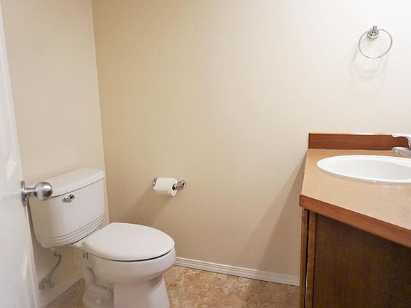 The 'Mckinley' by Hultquist. Master w/WIC and bay window, All 3 bedrooms upstairs, 1.5 baths, and a separate laundry room. Adjacent to living rm & dining room there is a kitchen w/a pantry, stainless steel appliances, brkfast bar & sliding glass door to the fenced in backyard area and greenbelt and new carpet. Easy access to JBER, near Tikahtnu commons, restaurants, and schools.