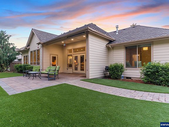 This beautifully maintained home is the newest in McNary Estates, offering main-level living with an upstairs bonus room or guest suite that includes a wet bar and full bath. The main level features an open-concept design with a spacious granite island, hand-scraped maple flooring, and high ceilings adorned with crown molding and a floor-to-ceiling fireplace surround. The primary bedroom boasts a full en-suite bathroom with a soaking tub. The backyard provides complete wooded privacy with a covered patio.