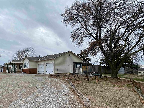 Call Darren Bridges 580-656-4893 for info. 2 bedroom 2 bath home with an office on 3.21 acres. Office could be a small 3rd bedroom. Spacious living area and master bedroom. Garage has been being used as a game room. 40x60 shop, 2 grain bins, shed with pens for show animals, metal corral and pens with a shed. Several additional outbuildings. Additional 1/2 bath outside in one of the buildings. Water faucet for corral and heavy duty working chute.