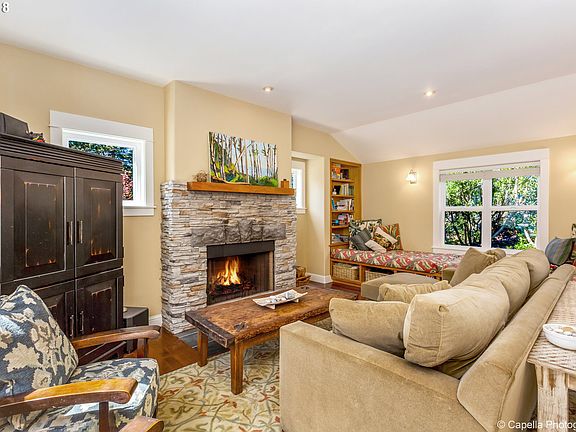 This storybook beach home infuses sophistication and style with charming comfort. Be drawn inside to the light-filled great room w/ fireplace, grand window seat, built-in shelves & twinkling lights. Ascend the stairs to a den-like second living space, 3 bedrooms, bath, & laundry. Down the hall is the romantic master bedroom & split bath. Imagine a soak in the Ofuro deep tub. Home is ideally located to gently stroll to beach or town.