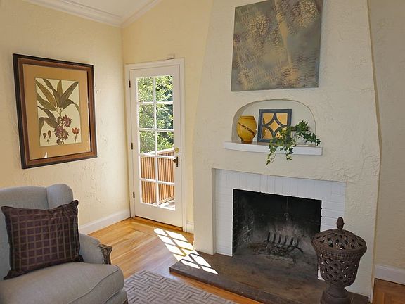 Enchanting Mediterranean in Thousand Oaks neighborhood. Secluded behind a garden wall, this stylish home has spacious light-filled rooms, deck, and Bay views. It's an ideal blend of elegance and comfort. Front entry is nearly level-in to the main floor. Downstairs level has in-law potential.