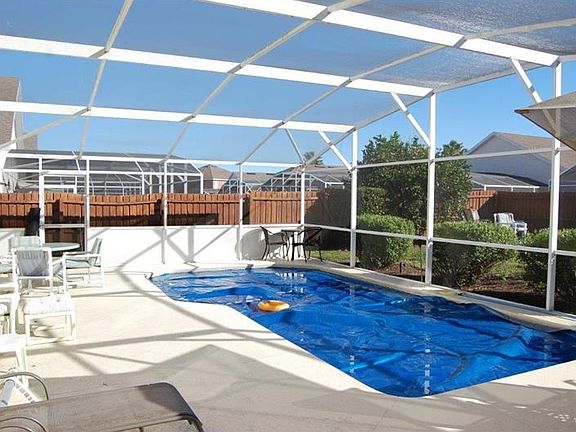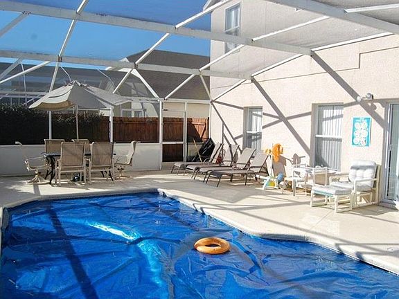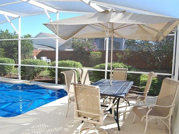 A six bedroom, fully furnished vacation home with private heated pool, fenced rear yard with raised sun deck located in one on the areas most sought after communities. The downstairs is an open floor plan with formal dining at the front, large living room with vaulted ceiling towards the rear and a fully equipped kitchen at the heart of the home. The master bedroom has a large en-suite bathroom benefiting from his and hers sinks, shower cubicle and separate tub. A further bedroom with ensuite (doubles as a house bath) is also located downstairs and has double entry doors providing easy wheelchair access. The garage has been converted into a games area with fooseball, air hockey, slate bed pool table, darts, TV and DVD player - guaranteed to occupy children of all ages !!!. Upstairs you will find four further bedrooms providing comfortable accommodation for 12 people. Outside the extended pool deck has plenty of space for al-fresco dining and sun loungers, and the fenced rear yard with mature orange trees has it's own sundeck providing a private retreat to relax and soak up the Florida sun.