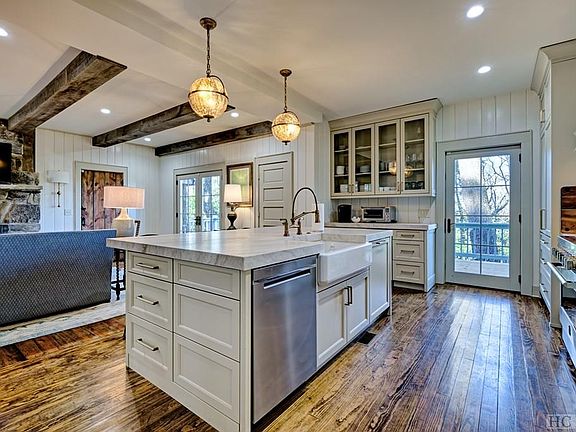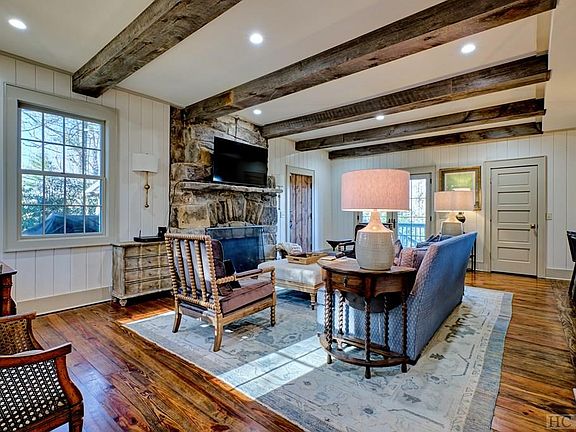 Nestled on the slopes of Big Bear Pen Mountain and just a stone's throw from the bustling heart of downtown Highlands, NC, lies a gem of a property that's recently undergone a complete makeover. Introducing 656 Big Bear Pen Road: a stunningly renovated and professionally decorated haven (courtesy of Spruce Interiors) that promises comfort, style, and unparalleled mountain living. This exquisite property boasts a spacious four bedroom, five bath main home along with a charming one bedroom guest cottage, making it perfect for entertaining guests or indulging in some quiet time. The main residence is a marvel of modern design and rustic charm, featuring a grand great room with a large stone fireplace that invites cozy evenings and warm conversations. The heart of the home is undoubtedly the chef's kitchen, complete with a large island for gathering. The main level also houses the owner's suite, a guest bathroom, a cozy study/den for quieter moments, and a dining room for memorable meals. But the allure doesn't stop there. Step outside to the large covered porch with its own stone fireplace, or enjoy the tranquility from the deck off the back of the house. Upstairs, guests can enjoy their own private retreats in three beautifully appointed bedrooms, each with its own bathroom. The separate guest house offers additional space and independence; it has a living room with a kitchenette, bedroom, and a full bathroom. This property has not only been a beloved home but also a successful vacation rental, grandfathered by the town of Highlands, adding to its appeal as a wise investment or a personal escape. Don't miss your chance to own a piece of paradise at 656 Big Bear Pen Road.