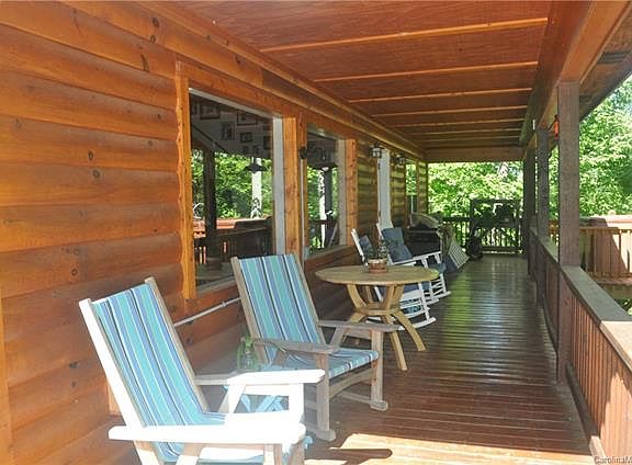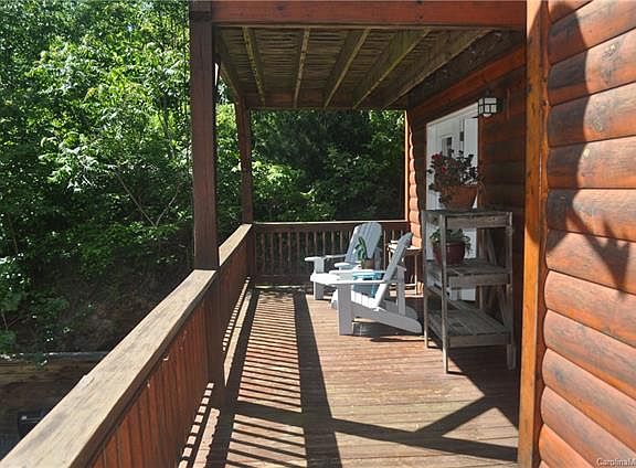 Nestled amid the trees with Long Range View, this log sided home is Ideal Location near Asheville. Large covered front porch with Hot Tub Deck offers six person therapeutic spa and open side decks to enjoy the seasons year round. Open living area w/stone fireplace and cathedral ceiling, dining area and opens to kitchen with granite counters and stainless appliances. Ideal for long term or seasonal use this three bedroom 3 bath has ample space with additional family space on lower level. Garage currently used as workshop w/mini split for heat & AC. Home offers solar with large hot water tanks & hot water lines in ducts. Additional lots available 1.47 ac & 2.59 ac. Occupied, day ahead notice to show