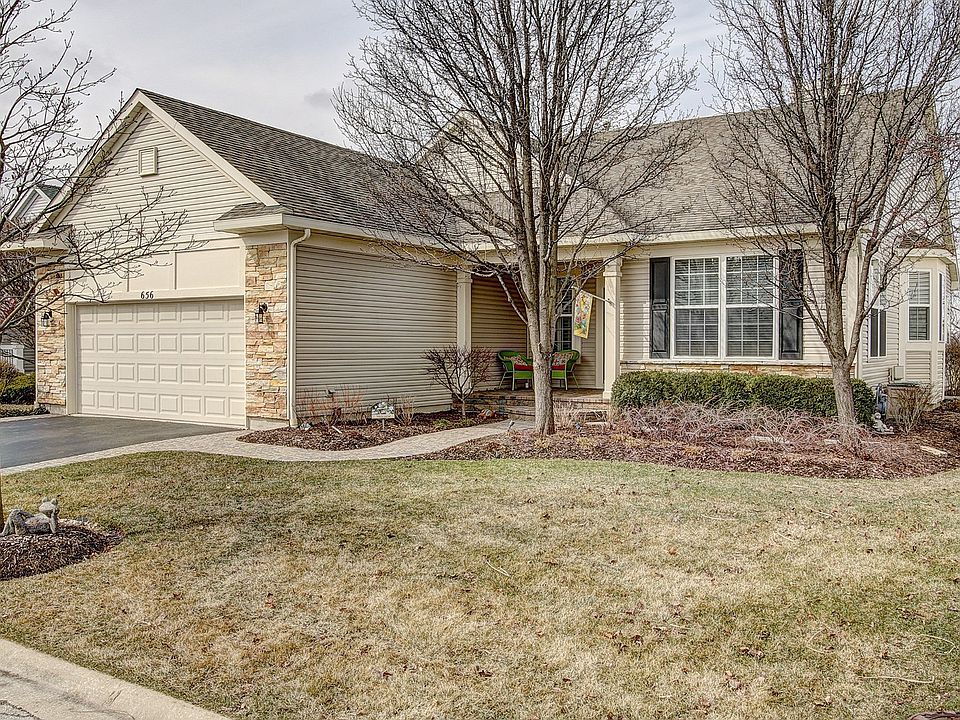 STUNNING!!!! Professional landscaping and paver walkway starts the journey to this wonderful home. New hardwood floors! Soaring ceilings, kitchen remodeled with gray cabinets, under and over the cabinet lighting, skylights. Family room with fireplace and built in book shelves. Sunroom and breakfast room open to GOLF COURSE VIEWS! 1st floor master with master bath, separate shower and tub. 2nd bath is newly remodeled. Den with built in desk. Closets with organizers. Full finished basement recreation area, wet bar, bedroom, office and full bath! Spacious paver patio, Smart home technology. $40,000+ in recent updates. Tons of storage in the oversized garage, basement and attic! Resort-like Grand Haven complete with clubhouse, pool, activities 55+ community. Easy access to highways and shopping.