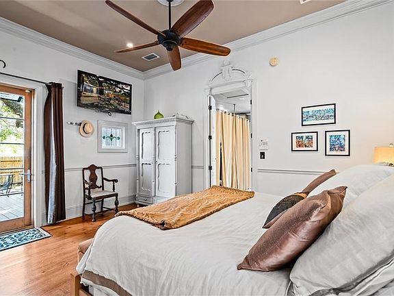 *Truly a unique shotgun styled home located in popular Downtown Historic Church St. East. This stylish pied-a-terre is located on a major parade route and is just around the corner from the MOT/Kennedy Home, British Park & Spanish Plaza. It is perfect for sitting on the side lot and watching the parades go by or walking to the Civic Center for events. In Addition to all the restaurants of Dauphin Street which are within walking distance from this home. The exterior of the home is freshly painted and features a charming front porch, large 16' private deck. Property is fully fenced w/ gated parking & an electronic opener. The 16'x21' carport and storage room both have electricity & centered around urban gardening. The home features a metal roof, custom storms for energy conservation, and many updates that are sympathetic to this historic home and district. The interior is open and loft styled, with an open living area graced w/ 11' ceilings and antique pine flooring. the living area is separated from the kitchen area by a double sided antique fireplace with ventless logs. Stainless steel appliances in the kitchen with unique and updated lighting fixtures throughout. Home features 2 bedroom areas, 1 contains a full bath w/ large walk in shower. Large storage/ dressing area. The other 17'x10' back bedroom has its own entrance and deck. This home has been maintained and loved by the current owners for many years. This is a truly unique property for individuals wanting to downsize, while being able to enjoy the restaurants, music, art, festivals and holidays, all from the heart of downtown**Listing Agent makes no representation to accuracy of sqft. Buyer to verify sqft. & all information deemed important.*** 2023-06-02