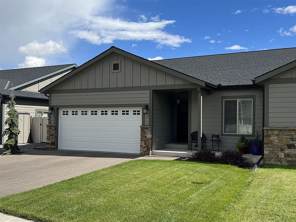Like new townhome ready for you to move in without lifting a finger. Has open floor plan tying together kitchen, dining and Great Room. Two (2) bedrooms, two (2) bathrooms, single level quality townhouse offering spacious master bedroom and adjacent master bathroom with oversized walk-in master bedroom closet. Large double car garage, fireplace, covered patio in the back, exterior stone accents with full landscaping, fence and underground sprinklers. Don't hesitate on this one. Call Jon at 406-407-2656 or your real estate professional today.