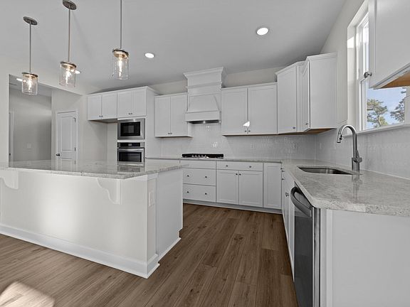 Main Level Guest Suite! Spacious Open Design! EVP flooring thru Main Living! Gourmet Kit: ''Casablanca'' Granite Countertops, Purestyle Full Overlay White Cabinets w/Double Trashcan Drawer, Pull Out Trays & Pot/Pan Drawers, Baker Blvd Picket Tile Backsplash, Oversized Island w/Breakfast Bar & Pendant Lights, SS Appliances Incl 30'' Gas Cooktop, Sep Wall Mount MW & Oven & Pantry! Open to Breakfast Nook w/Access to Rear Covered Porch! Owner's Suite: Plush Carpet, Ceiling Fan & Large WIC! Owner's Deluxe Bath: 12x24 Calcutta Tile Floor, Dual Sink Vanity, Full Overlay White Cabinets, Freestanding Tub, 12x24 Calcutta Tile Surround Walk in Shower w/Bench Seat & Private Water Closet! Fam Room: offers Slate Srrnd Gas Log Fireplace w/Built in Cabinets! 3rd Floor Media Room w/Finished & Unfinished Storage Areas!