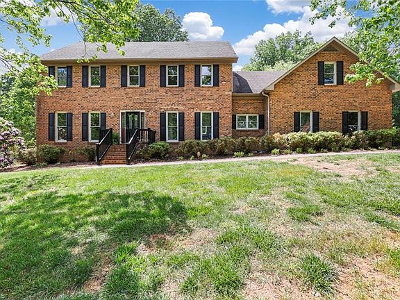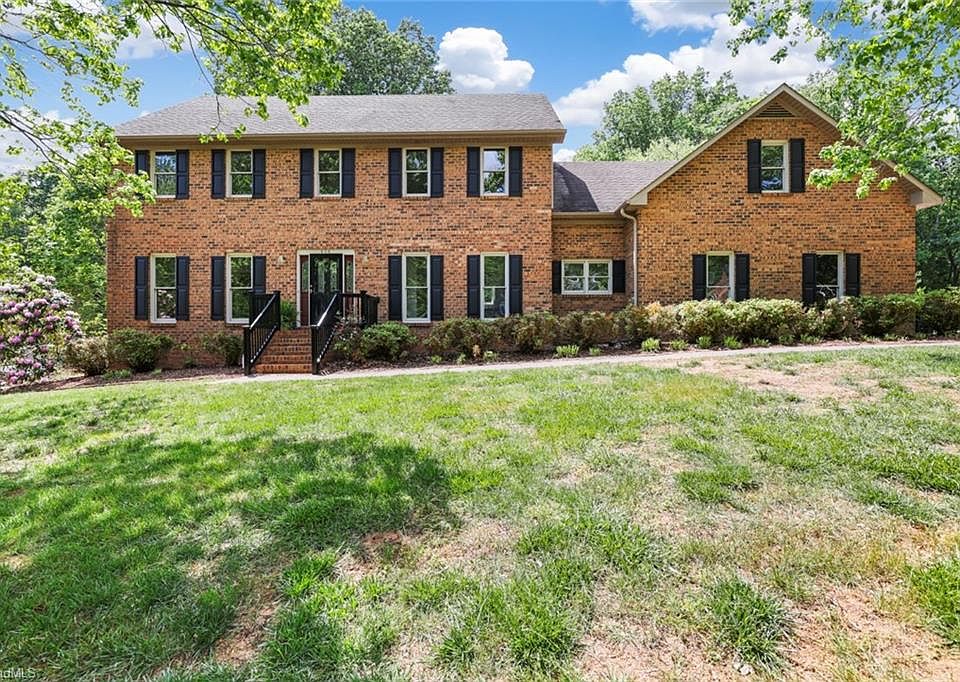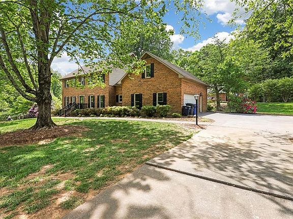 Brick traditional in the center of the triad with storage galore, boasting a primary bedroom with multiple walk in closets or private office space/craft room, cathedral ceiling & updated ensuite bath. Three additional bedrooms offer double closets in each. Multi-functional bonus room above garage with separate staircase has many possibilities. Main level office or study area with built in bookcases & bright laundry room are near the refreshed kitchen with stainless steel appliances. Hardwood floors on the main level & updated baths throughout. Oversized main level 2 car garage with storage closet along with an additional 2 plus car basement garage with workshop area (plumbing in basement also) New paint, tile , carpet & dual HVAC systems. Tranquil screened in porch & abundant deck overlook the corner lot with mature trees & landscaping. Dual driveways offer plenty of parking. Convenient location to restaurants & interstates. Just in time to enjoy the neighborhood pool for the summer.