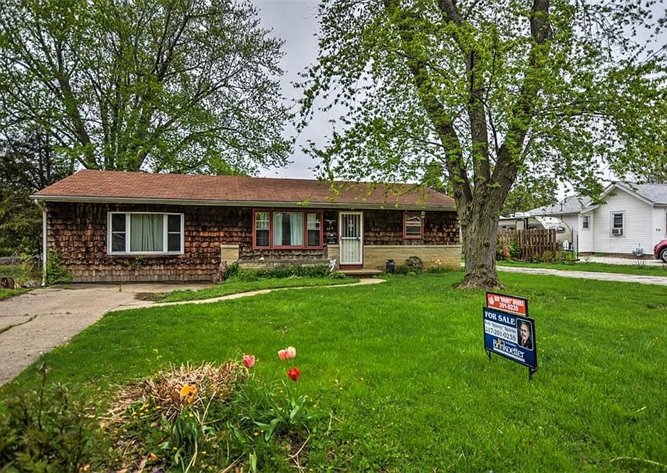 Very private single level home, quiet north location. Large open family/dining room. hardwood floors abound. Nice size fenced yard with covered patio. 2 car detached garage. selling as is.