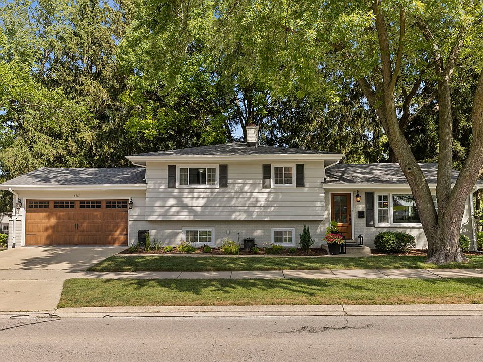 Adorable updated split level with an incredible location across from Newton Park! The main level features an updated kitchen with stone counters, stainless steel appliances, peninsula breakfast bar, 42" cabinets, back splash, and is open to the dining area! The sizable living room on the main level has plenty of room for an over-sized sectional, perfect for entertaining or relaxing around the house! Off the kitchen space you'll find direct access to the backyard & patio space with a beautiful stamped concrete patio, new landscaping, and new shed! The upper level features 3 bedrooms together and a full bathroom off the hallway. The lower level family room is great for a second entertaining place, playroom, fitness area, home office and so much more! Also in the level you'll find the 2nd full bathroom and a sizable laundry room and direct access to the 2-car garage. Every space in this home has been lovingly updated! Exterior updates include new roof (2021), garage door (2022), windows (2018), water heater (2018), exterior doors (2023), outdoor lighting, gutter guards (2018), exterior paint, and more! Updates galore on the interior as well including custom window shades, trim/doors, electrical box (2016), bathrooms (2020 and 2023), refinisher hardwood flooring on the main level & new LVP in the lower, upgraded stairs/railings (2022), and the list goes on! The home has been meticulously maintained by the current owners! Newtown Park, one of the most beloved downtown Glen Ellyn parks, and includes a NEW playground with an inclusive emphasis, a small sensory garden, turf field, skate park, basketball court, tennis/pickle ball courts, baseball diamond, picnic tables and even a sledding hill & seasonal ice skating rink. Close to train access and all amazing downtown Glen Ellyn as to offer! Easy highway access for commuting needs! TOP RATED schools & park district! Welcome Home!