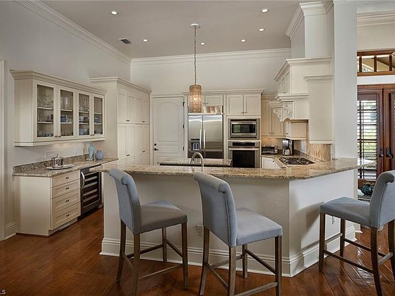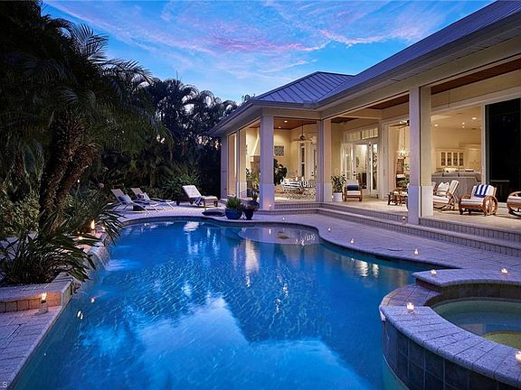 One level living at its finest in this old Florida style dream. A charming covered front porch, metal roof and formed stucco exterior sets the mood for the beachy chic style. Enter in through the impressive mahogany door and let your eye lead you to the tropical backyard with plentiful covered and uncovered spaces, a well-equipped summer kitchen and roll-down screens so you can open the doors and enjoy. The thoughtful floor plan allows for three bedrooms, a den and a kitchen open to the great room for easy flow. Hand scraped wood flooring, plantation shutters throughout and tongue-and-groove ceilings, all in the heart of Park Shore, finish this true piece of paradise. Park Shore residents have the ability to purchase or lease boat docks at the Venetian Bay Yacht Club.
