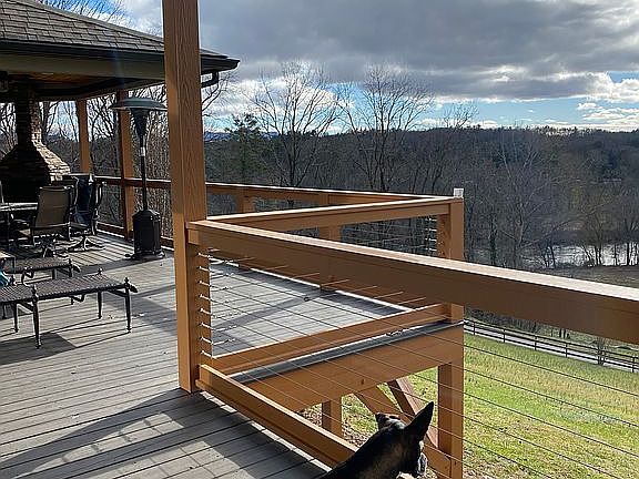 Magnificent custom built craftsman home with breathtaking long range mountain and French Broad River views in Arden. This great location is close to the Airport, Shops, Restaurants, and I26 yet in a quiet setting with 2 acres fenced yard with an electric gate for privacy. This well appointed 5 bedroom 4 1/2 bath, 2 car attached garage home features two levels with over 4000 SQ FT of open floor plan and cathedral ceilings. Master and Living areas have access to the outdoor stone fireplace/grill area with expansive covered decks for entertaining. There is also a 24 x 36 detached heated and insulated workshop/garage. Lower level has two bedrooms two baths, a gym/recreation area, large bar and kitchenette with appliances. The Theater room awaits your final touches. All bedrooms, decks and jacuzzi area in this home have magnificent views. Additional details will be provided on construction and features brochure. Includes new 12kwh Solar system with 2 Tesla powerwalls. Come and see this beauty today!