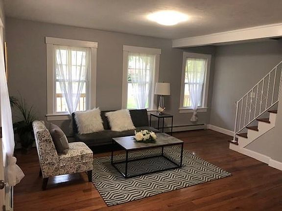 Totally renovated large colonial with 3 beds and 1.5 baths - New kitchen with cabinets, SS appliances, granite counters/island and recessed lighting. New bathrooms with tile floor and all new fixtures. New electrical throughout including service. New pluming, new high-efficient on demand gas heat and hot water. New windows and flooring. Large 18'x18' 3 season sun room off kitchen. Kitchen is open and large 17'x13'. Large yard with over-sized 2 car garage/barn - with extra space. New front porch. Convenient location with easy access to all major routes.