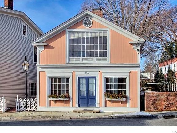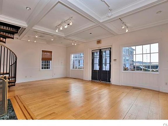 Would you like to live where you work? One bedroom condo and office space in historic Southport Village. Or you could make the whole place office space. The double front door is flanked by large, classically paned bay windows. The main floor features warm, wall-wash accent lighting. Perfect for a showroom/gallery, retail or even busy desks. The central fireplace ups the charm factor 28%. Complete with cozy kitchen, and lovely full bath. A spiral stair to the second floor with another fireplace and large picture window with a commanding view of the harbor and the Pequot Yacht Club. Sizeable bedroom (or bossas office) with built-ins, washer/dryer, plus built-in speakers throughout. Outside stairs to separate entrance for 2nd floor.