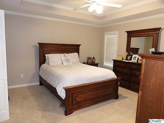This house is move in ready in an established neighborhood just outside of Guntersville City limits & a +/-30 minute commute to Huntsville via Hwy 431. Features: new roof, siding & gutters in 2017, 3Bd/2Ba, vaulted great room, laminate floors, carpets recently professionally cleaned, ceiling fans, crown molding, all kitchen appliances remain, separate shower & soaking tub, large master closet, 2 car garage, covered front porch, 12'x12' deck & a 12'x12' detached storage building on slab all on a level lot. Only minutes from Lake Guntersville.