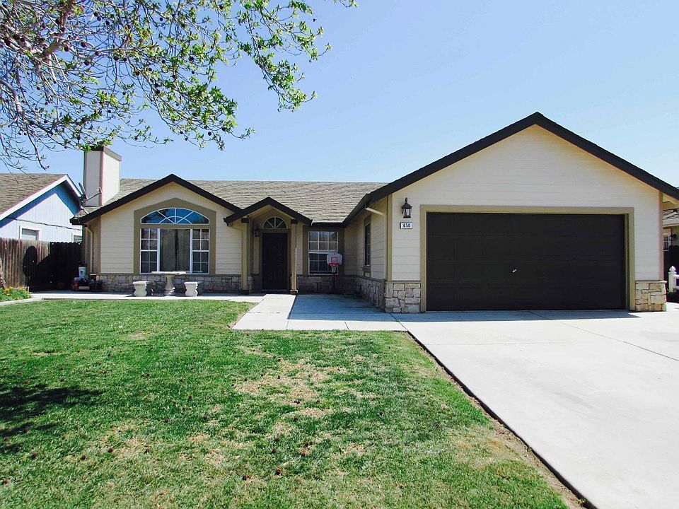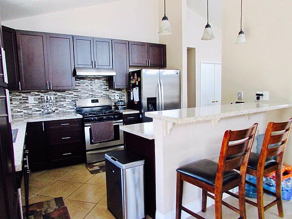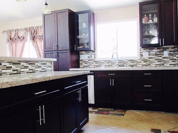 STUNNING AND TRULY BEAUTIFUL HOME FEATURES A BRAND NEW KITCHEN AND NEW INTERIOR AND EXTERIOR PAINT. The kitchen features brand new rich colored cabinets, stainless steel appliances, beautiful granite slab counter tops, island with eat in bar and custom tile floors. Other features include high vaulted ceilings, large tile floors, new wood laminate flooring with new baseboard in all bedrooms, and new vanities and mirrors in both bathrooms. This home feels and looks like a brand new home but at a much better price.