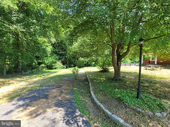 Secluded brick and block rancher with comfy front porch!   Come check out this one level home tucked away from the hustle and bustle  and listen to the sounds of the gentle stream which flows beside the front yard.  Home features newer roof, windows, and doors from the previous owner.  Large detached 2 car garage and paved driveway with plenty of room for parking.   Convenient location near Rt. 40 and shopping centers.  Could use some TLC, but this home will be quite charming for the savvy buyer!  Come check it out!