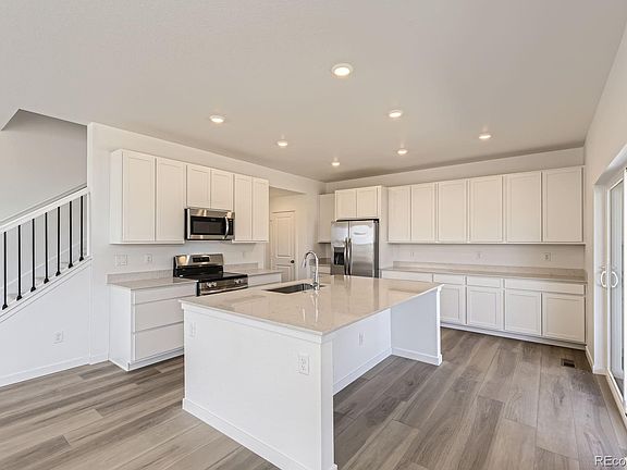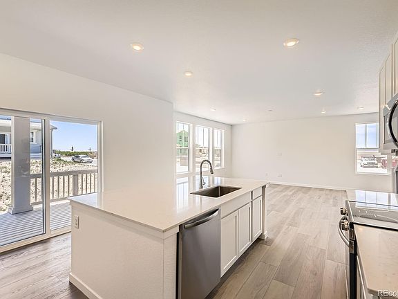 Gorgeous new Sky Ranch - this beautiful Pinnacle 2 story features 4 beds, 2.5 baths, main floor study, great room, upstairs laundry, unfinished basement and 2 car garage. Gorgeous finishes and upgrades including a stainless steel appliances, vinyl plank flooring, slab quartz counters/island, covered rear patio and more! Lennar provides the latest in energy efficiency and state of the art technology with several fabulous floorplans to choose from. Energy efficiency, and technology/connectivity seamlessly blended with luxury to make your new house a home. What some builders consider high-end upgrades, Lennar makes a standard inclusion. This community offers single family homes for every lifestyle. So much to see and do in this charming community – something for everyone. Photos and walkthrough tour are a model only and subject to change.
