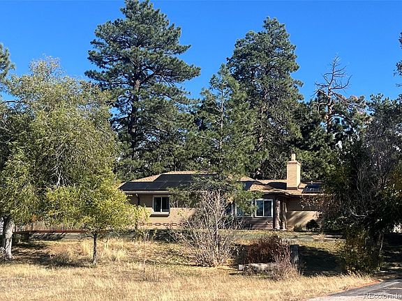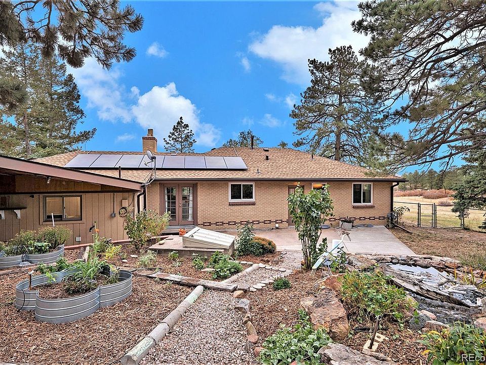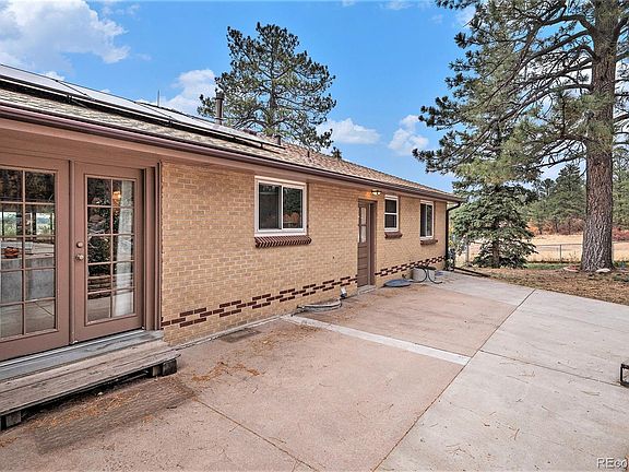 Historic Douglas County property for sale on 4.7 acres with easy access to nearby Franktown! Come explore this unique property featuring a 5 bedroom, 3 bathroom brick ranch home, a large workshop a storage shed and detached garage. The property has no HOA or covenant restrictions so your options are only limited by your imagination! The main home consists of 2568 square finished square feet and features 4 bedrooms and 3 full bathrooms, with a finished basement and attached oversized 2 car garage. The home has an updated Kitchen and main floor bathrooms as well as hardwood floors throughout the main level. There are 2 wood burning stoves on each level for a warm and inviting living space. The home comes with an extensive 10.5 KW solar panel system that was installed in 2022, so electric bills are reflective of this valuable asset! The storage shed is made from an old schoolhouse that was brought onto the property in the 1950's. The large workshop has a concrete floor, wood burning stove, water and electricity and is the perfect option for a side hustle workspace. Enjoy the peaceful, fenced in backyard with water feature and soak in the the space as you entertain your loved ones! If you have been looking for a close in, rural property, you have found the one! Schedule your showing today!