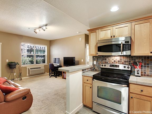 Come home to this quiet & contemporary 2 bed, 1 bath condo! Coveted ground-floor corner unit boasts a bright, open floorplan with gorgeous finishes. The well-appointed kitchen includes designer tile countertops, full-height tile backsplash, and stainless steel appliances. Master bedroom retreat opens to a covered patio encompassed by manicured grounds. Stay cool in the summer with A/C and 2? faux wood blinds throughout! HOA amenities include pool, gym, park, and playground. Also included: water, sewer, garbage, and high speed internet. Close to Streets of Tanasbourne Mall, parks, walking trails, and major employers. Bonus: MAX light rail is just steps away!