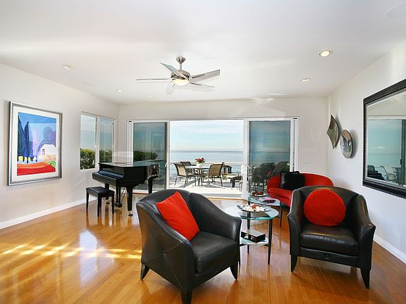 Premier oceanfront twin home on highly desirable Neptune Ave with unobstructed panoramic views of the Pacific Ocean. Two seawalls; Magnificent view decks; Pecan wood flooring; Kitchen with granite counter tops, stainless appliances and custom European cabinets; coffered ceilings; Skylights; One full bed/bath down; two-car attached garage with ample storage. Walk to world-class beaches; minutes drive to resorts, golf, amusements parks, Del Mar Racetrack and more!