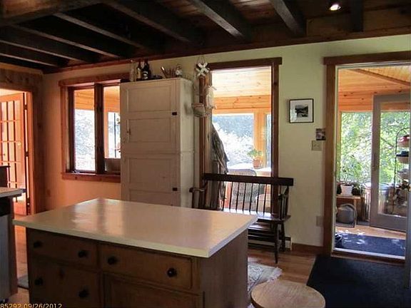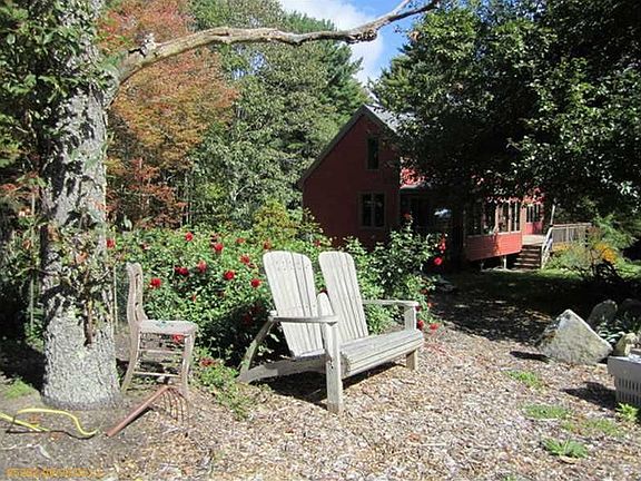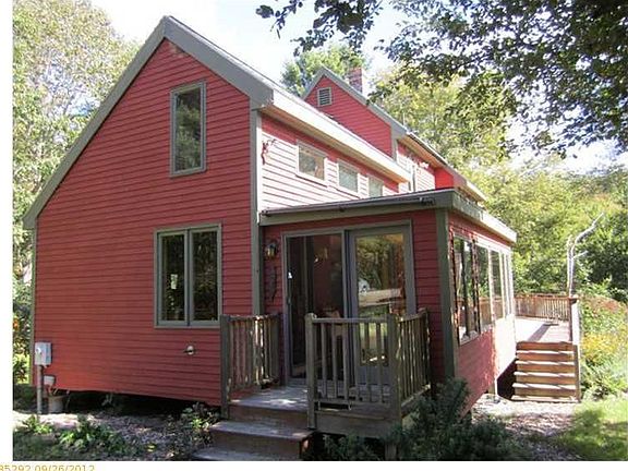 Sunlit Contemporary Saltbox privately set on 5 + acres with a right of way to Back River just a short walk at the edge of the property. Beautiful stone walls, open meadow setting with gardens and mature fruit trees, and adjacent to conservation land.