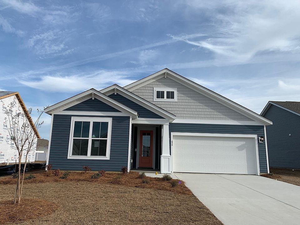 MOVE IN READY! BRAND NEW! Transitional, Coastal farmhouse flair boasting an open concept design with a traditional foyer. Bedrooms 2 and 3 are privately located with bath 2 in the front of the home. The Primary bedroom is quietly located in the rear of the home. The Primary bedroom boasts a bay window and a spacious bath with a large tile walk-in shower and double vanity. Upgraded included features: a Carolina room, 42" crisp white Aristocraft cabinets with crown molding, Alpine Winter Quartz kitchen countertops, Sandcastle Oak Mohawk Rev wood flooring in the living areas, Daltile in both baths and laundry room, natural gas Whirlpool stainless steel range, over the range microwave- vented to the exterior, dishwasher, irrigation system, attic storage over the garage, tankless Rinnai natural gas water heater, and more. Indoor Air/Plus EPA Qualified Energy Star Certified homes with full a Broan Energy Recovery Ventilator (Fresh Air) system that expels stale air and pulls in fresh air, and a 16 seer HVAC. Minutes to several shopping and dining venues (Super Target, Super Walmart, Lowes Foords, Kohls), the Myrtle Beach State Park, and public beach accesses in Surfside Beach. The entrance to Highway 31 is just a few minutes down Highway 707. Amenities include a community pool, pavilion, and weekly curbside trash collection.