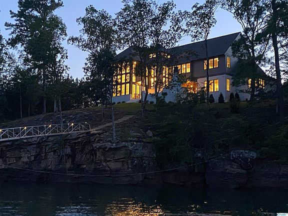 As seen in Lakeside Life Magazine and decorated by White Willow! Your New Home Comes FULLY FURNISHED! This home has the rare combination of bluff views, a flat driveway, and a private street. You'll fall in love with the 2 story family room with a floor to ceiling stone fireplace and a 360 degree view of the lake throughout the home. Dream Home features include cedar ceilings and beams, surround sound, outdoor fireplace, 6 range gas cooktop, quartzite countertops, tile shower, designer master closet, wood flooring, solar power on the dock, nugget ice machine, built-in water softener and reverse osmosis system, cabinets in the garage, basketball goal, and stairs to cliff jumping!