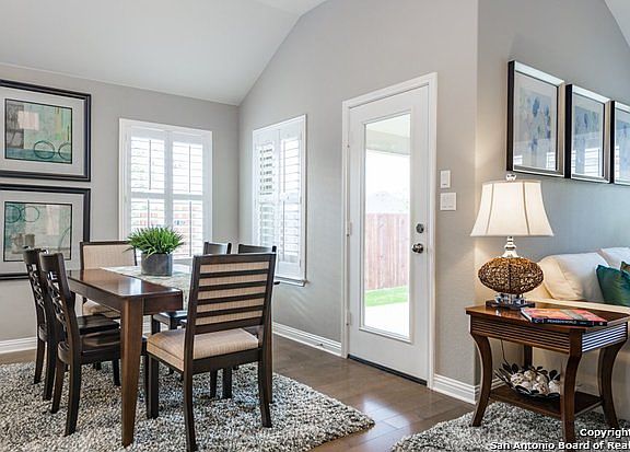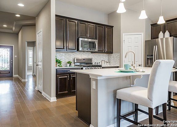 This Weymouth's one-story living features an island kitchen open to the dining area and the Pulte Planning Center . This home features upgrades such as granite countertops, stainless steel appliances, and 12 x 24 tile floors.