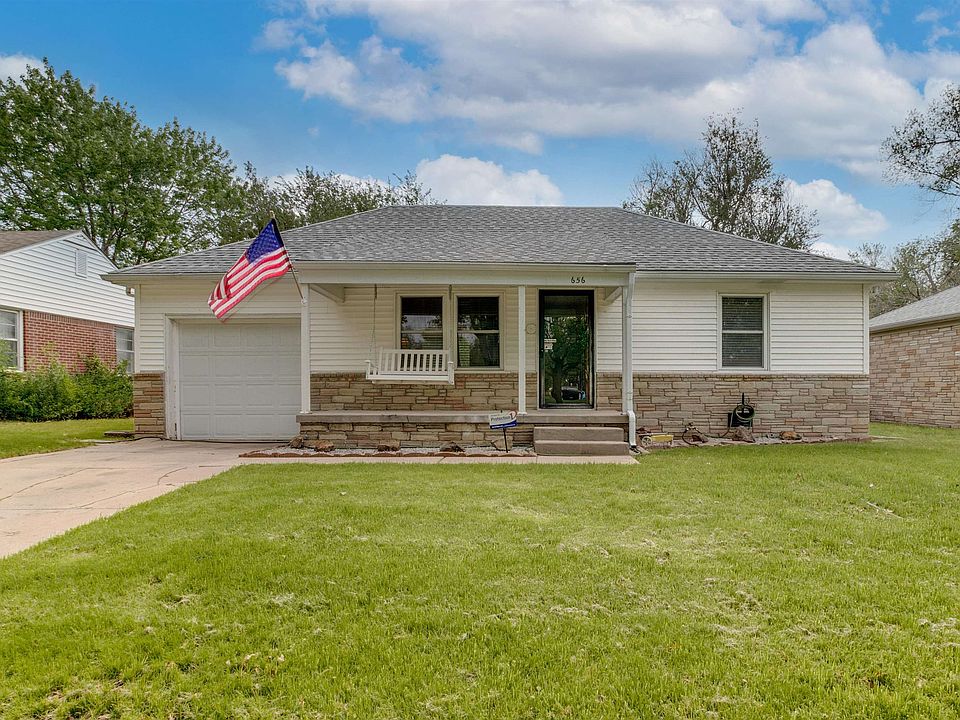 Adorable ranch home with great curb appeal and personality! Nice covered front porch with porch swing to sit and enjoy your evenings! All hard wood flooring throughout the home (Can be refinished in the stain color of your choice). Cute kitchen with sliding door to huge, fenced, back yard! Sit out back and enjoy the awesome fire pit! Location is ideal with easy access to Kellogg. Great starter home for first home buyers, great home if down sizing, or for investors!
