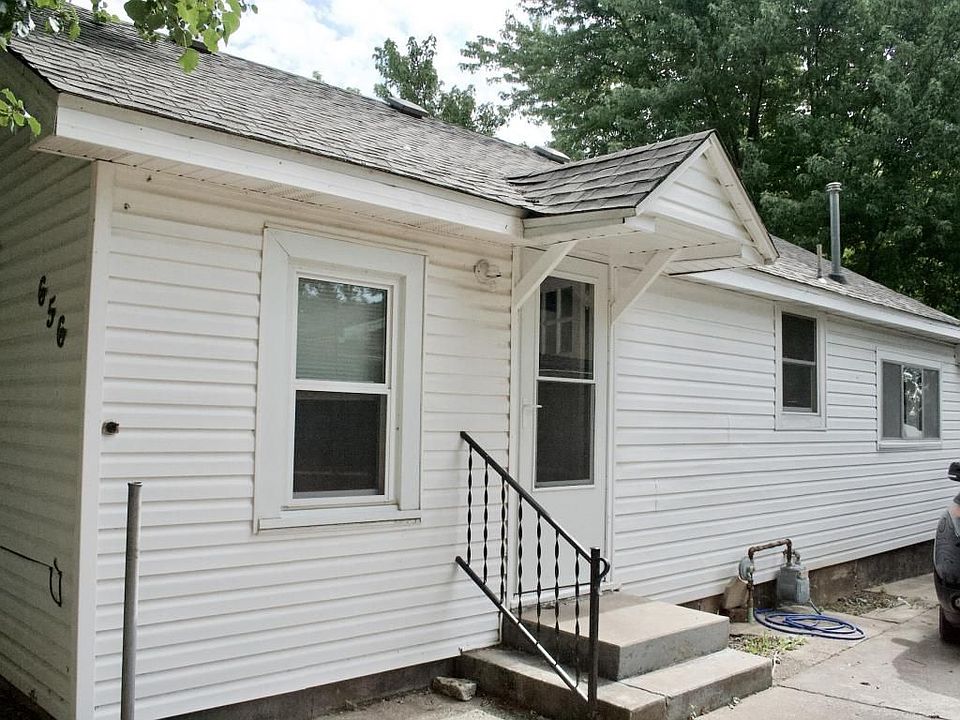 3 BR 1 Full Bath with Jetted Tub. Nice home with hardwoods floors, Gas cook stove, New hot water heater, New Windows, Roof is approx 4 years old. Attic has permanent stairs and could be finished easily. Large private back yard completely fenced, with built in grill. Oversized 1 car detached garage/workshop with electric and gas run to it. Both house and garage are maintenance free.. including the soffits. This is a really nice well maintained home.