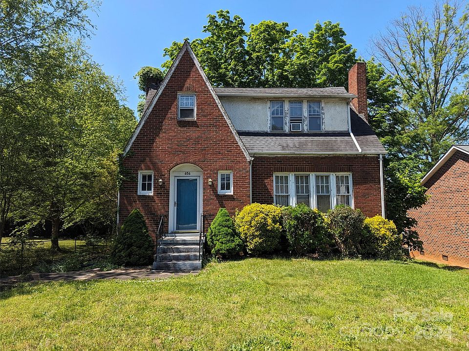Come and make this delightful brick Tudor home your own, conveniently located near downtown Statesville. Brimming with exquisite details and abundant character, this home boasts hardwood flooring throughout, a cozy living room accentuated by a fireplace, and a sunroom adorned with built-in shelving. Sun-drenched interiors are complemented by expansive windows, offering a seamless infusion of natural light. Upstairs there are three bedrooms and a full bathroom. Step outside onto the tri-level deck, ideal for hosting gatherings. With easy access to I-40 and I-77, this home offers both charm and convenience."
