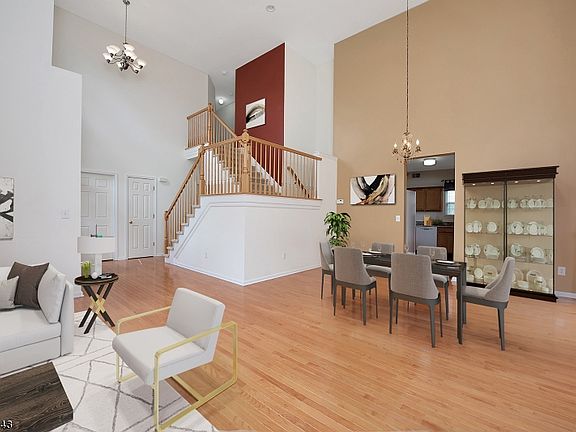 UNIQUELY DESIGNED MODERN COLONIAL IN MORRIS COUNTY'S HOTTEST AREA OF SINGLE FAMILY HOMES. BRAND NEW WIDE PLANKED HARDWOOD FLOORING GRACES THE FIRST FLOOR FOR A SEAMLESS EFFECT. DRAMATIC TWO STORY LIVING ROOM, DINING ROOM & FOYER SURROUND THE DUAL SOARING STAIRCASES. BEAUTIFUL KITCHEN SHOWS OFF BRAND NEW BLANCA MINK EXOTIC GRANITE COUNTERTOPS & GE APPLIANCE SUITE W/NEW REFRIG. WALK IN PANTRY & SUNNY BREAKFAST ROOM LEAD THROUGH SLIDERS TO DECK & PRIVATE BACKYARD PROPERTY. UPSTAIRS, NEWLY INSTALLED CARPET GRACES ALL 4 BEDROOMS. MASTER BEDROOM FEATURES TRAY CEILING, DUAL WALK IN CLOSETS & ENSUITE BATHROOM WITH DUAL SINKS, SOAKING TUB, DOUBLE STALL SHOWER & WATER CLOSET. FULL BASEMENT OFFERS APPROX 1000 MORE SQ FT FOR STORAGE & RECREATION. PUBLIC UTILITIES ARE HERE...RARE FOR THIS AREA. LOTS OF UPDATES HERE!