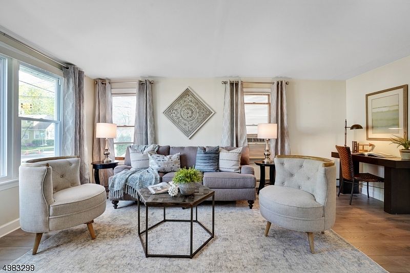 This COMPLETELY UPDATED home is Move In Ready! Beautiful new flooring throughout, HUGE eat-in kitchen w/new stainless steel appliances off the family room and a bright sunny living room invites you to relax & enjoy your new home. With four bedrooms and a sitting room/den on the second floor, there's plenty of room for a home office! Newer windows, interior doors, updated bathrooms and much more!! Close to town, schools, parks & train.