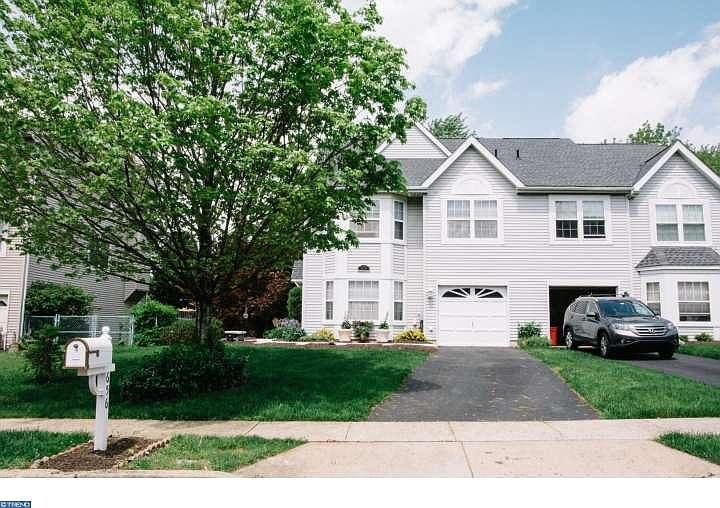 Well maintained twin home in Central Bucks School District. You won't be disappointed!!!! As you walk up to the home you will see the beautiful landscaping, new sidewalk and the private entrance. Enter the living room and notice the newer carpeting in the living room and wood laminate floors that finish out the main level.  The living room has a nice bay window overlooking the open space across from the home. Next you'll flow right into the nicely sized dining room with new light fixture. The family room comes with a stone fireplace, plenty of windows which overlook the wooded area in back. The kitchen is updated with corian counters and faux tin back splash.  Sliding doors lead from F/R onto a very private deck area where you can enjoy the wooded view and peaceful setting.  A retractable awning is an added feature for your comfort. An adorable brick patio area on the side where you can sit and relax while you grill. Don't miss your opportunity to make this your new home!!! Shows like a dream!